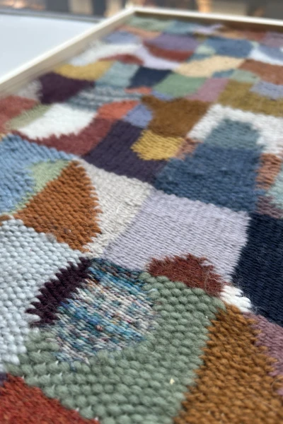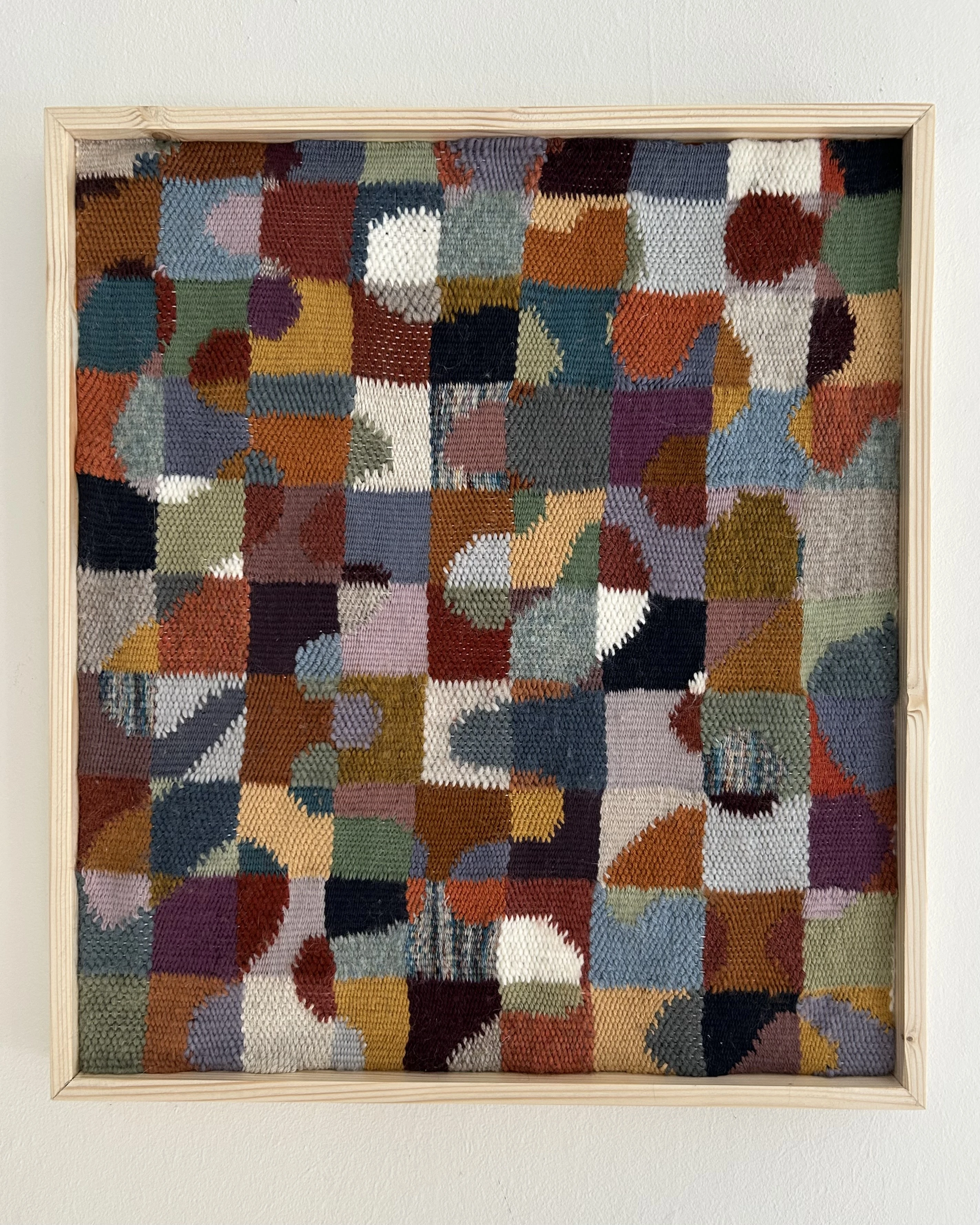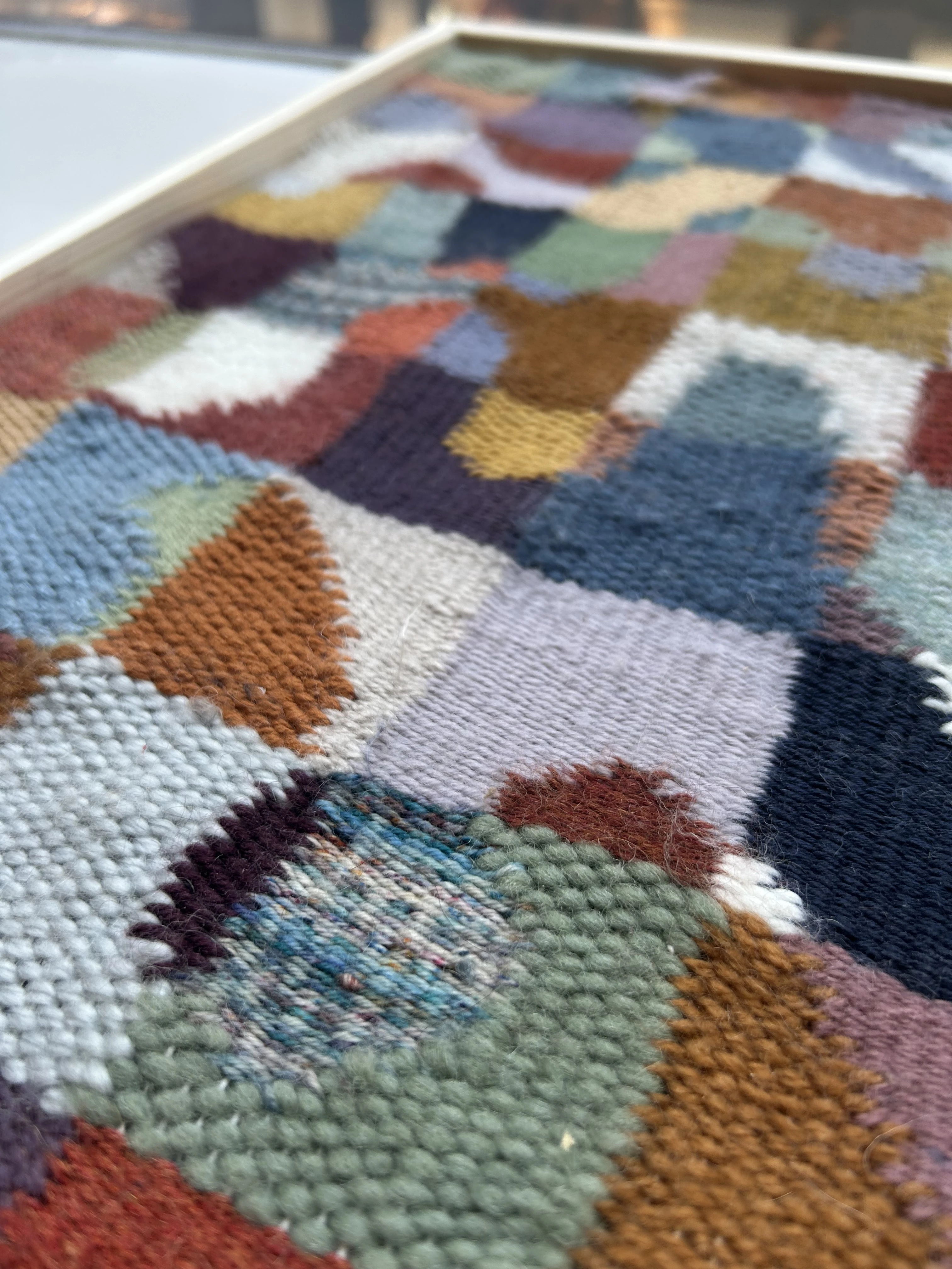 Woven artwork with waves and lots of colors. 51x51cm with wooden frame.